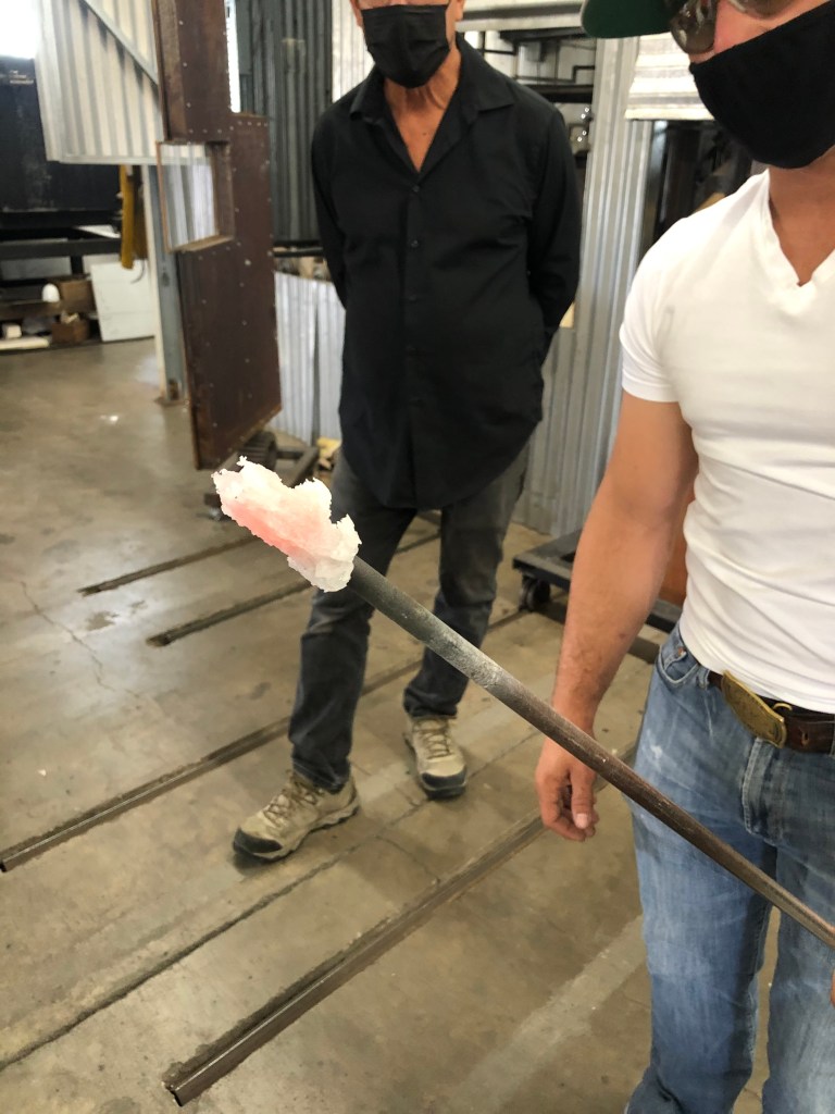 Because large hunks of glass aren’t as useful to me as a torch worker, several of the other participants most obligingly pulled cane. If you’ve never seen how it gets done, video is below.
