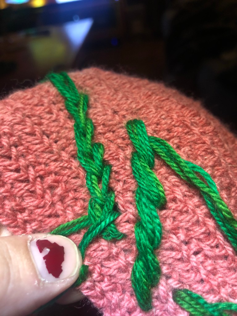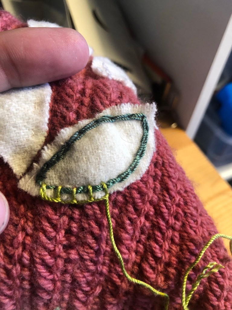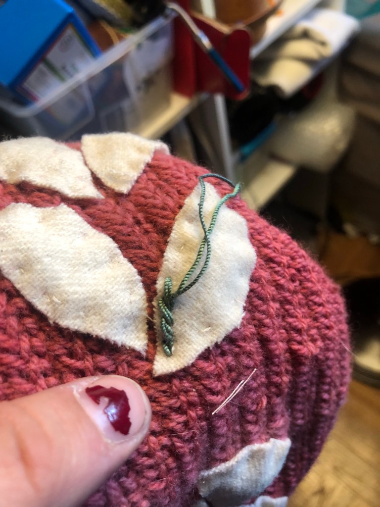 We had a few options here, and the original plan was to embroider the leaves in green (more on that later), so the desire