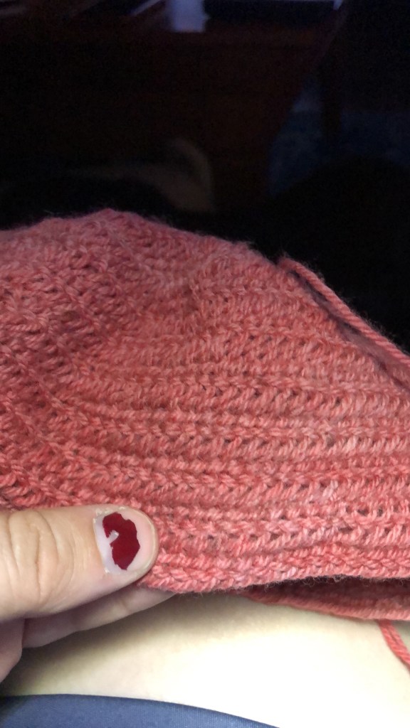 Most people nalbinding do so with thickly-spun, single ply, yarn. Maybe two-ply, but you’ll rarely see stuff done in fingering out of a commercially made color. Fingering-weight is maybe a level of madness, and at least this didn’t have any nylon/tencel/etc which made splicing marginally easier. (Spincycle Yarns used to have a line called Independence, which was the absolute best… single-ply, worsted-weight, just enough thick/thin variation, and with a fade. I still mourn it.) I spoke awhile ago (in 2017, admittedly) about the basics of nalbinding, and the sentiment stands. Because in nalbinding you’re making a series of knots, and the result is a warm, somewhat cushy, item, heavier-weight fibers hold up better. (This is also why anything that doesn’t felt gets weird – you have to find a way to join pieces that’s smooth and the longevity will be a bit different because you don’t have the felting properties. My theory is that you’ll have a much better time with this if you do one of the much thicker stitches, where you’re picking up multiple loops. Still wouldn’t recommend socks, though. You’re putting that much work into it – make an epic hat. Silk blends are luscious.)