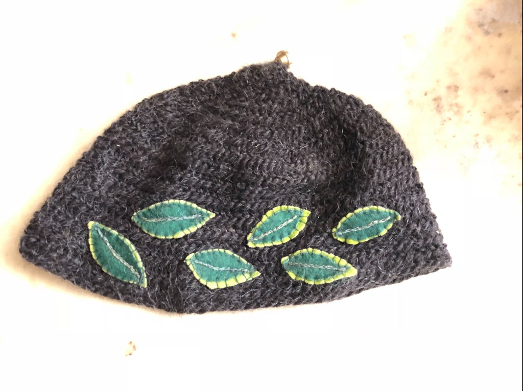 For that one, I used a brown wool (likely from Brown Sheep’s Lamb’s Pride, knowing my taste) and I’d sewn down applique leaves on it made out of some wool I had lying around. The result is definitely something unique, that also stays true to the recipients tastes and style. I’ve seen a handful of photos of her wearing it since, and I’m always so happy to see it.